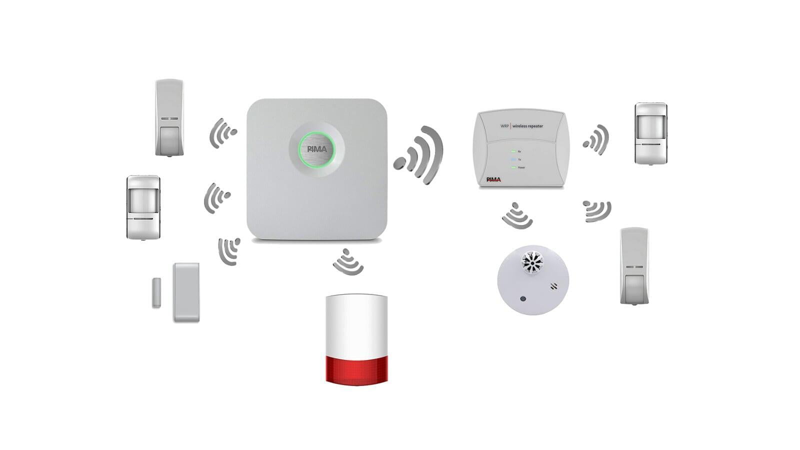 Funciona con periféricos alámbricos e inalámbricos solos o mezclados con múltiples modos de comunicación: Ethernet IP - Teléfono convencional, Celular GSM y Radio VHF/UHF, este último pocas marcas lo manejan, lo que permite asegurar que tendrá una cuarta opción de notificación por el sistema en caso de intrusión.